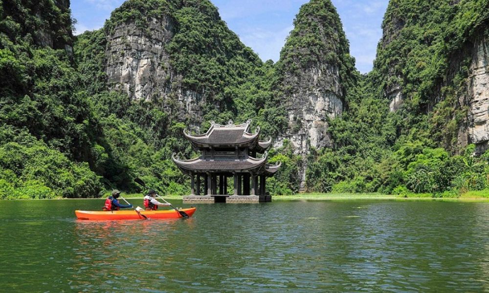 Kayaking is a new and exciting way to explore the Trang An Scenic Landscape Complex. There are two kayaking routes to choose from. The first route spans 8 km and takes you through notable sites such as Trinh Temple, Tam Quan Gate, Dark Cave, Quy Hau Cave, and Nui Ngoc. The second route covers approximately 5 km, passing by Kong Island, Thuy Dinh, and Vu Lam Palace.