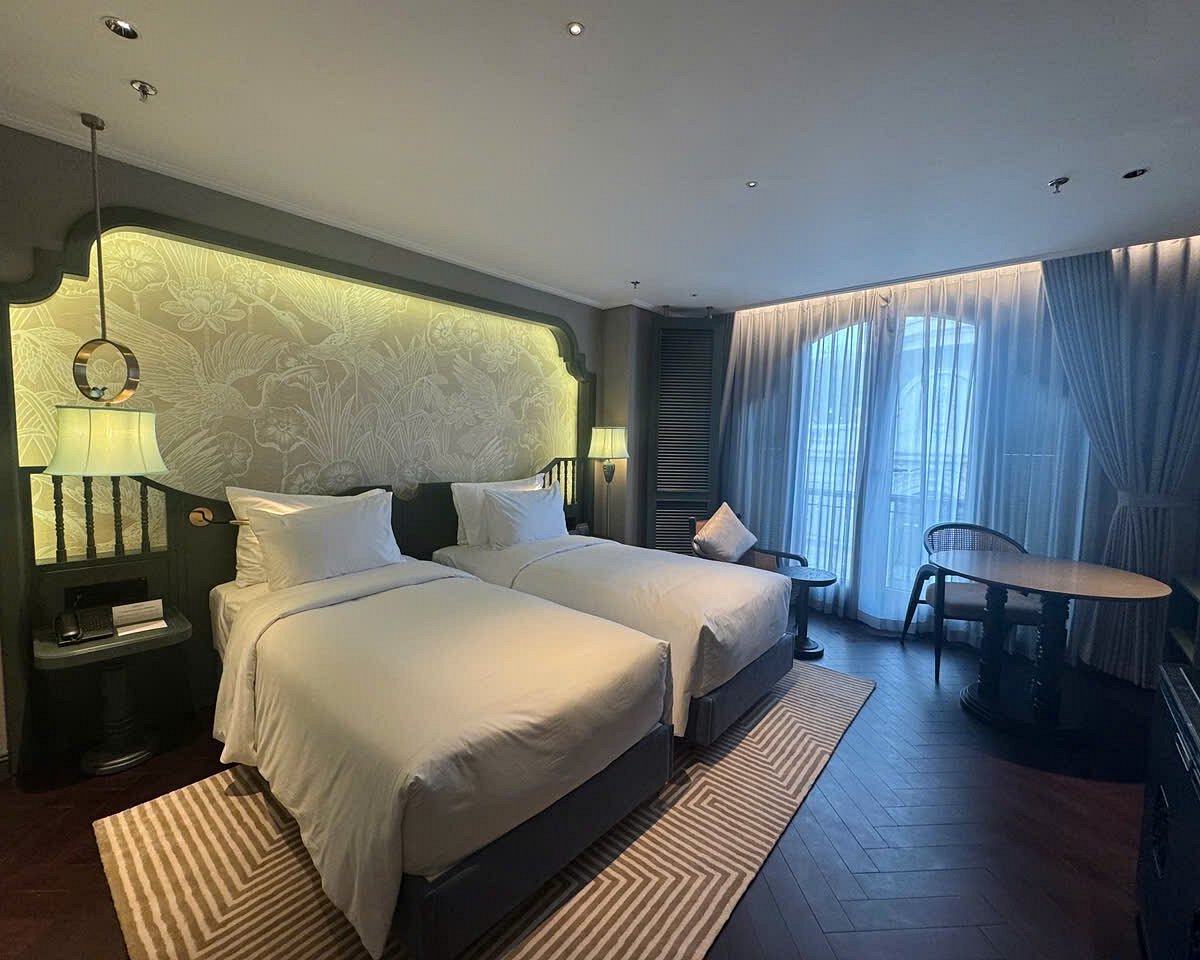 Không gian lưu trú mang phong cách tinh tế, pha trộn giữa nét kiến trúc Pháp - Đông Dương và tiện nghi hiện đại, tạo nên cảm giác thư giãn sau một ngày khám phá lịch sử.
